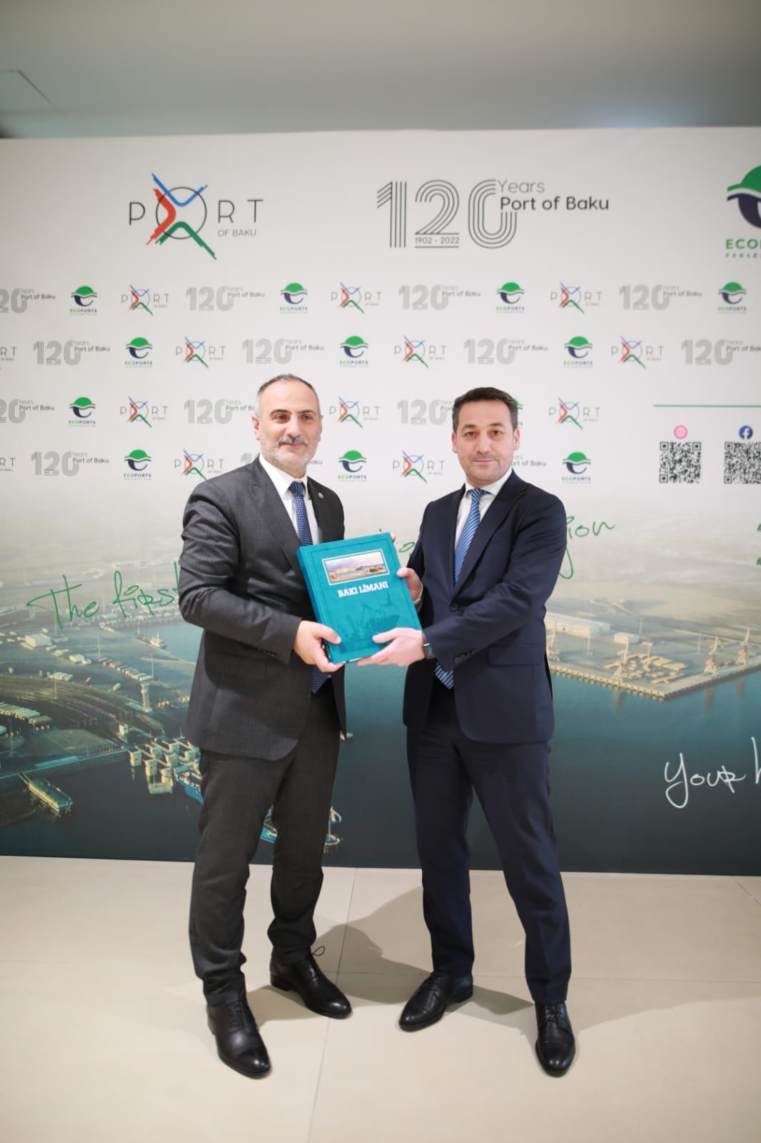 İmza töreninde Denizcilik Genel Müdürü Ünal Baylan'a Bakü Limanı kitabı armağan edildi.