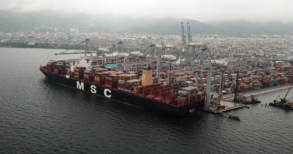Türkiye'ye bu güne kadar gelen en büyük konteyner gemisi olan 19 bin 224 TEU'luk gemi, Kocaeli’nin Körfez ilçesindeki limana yanaştı.
