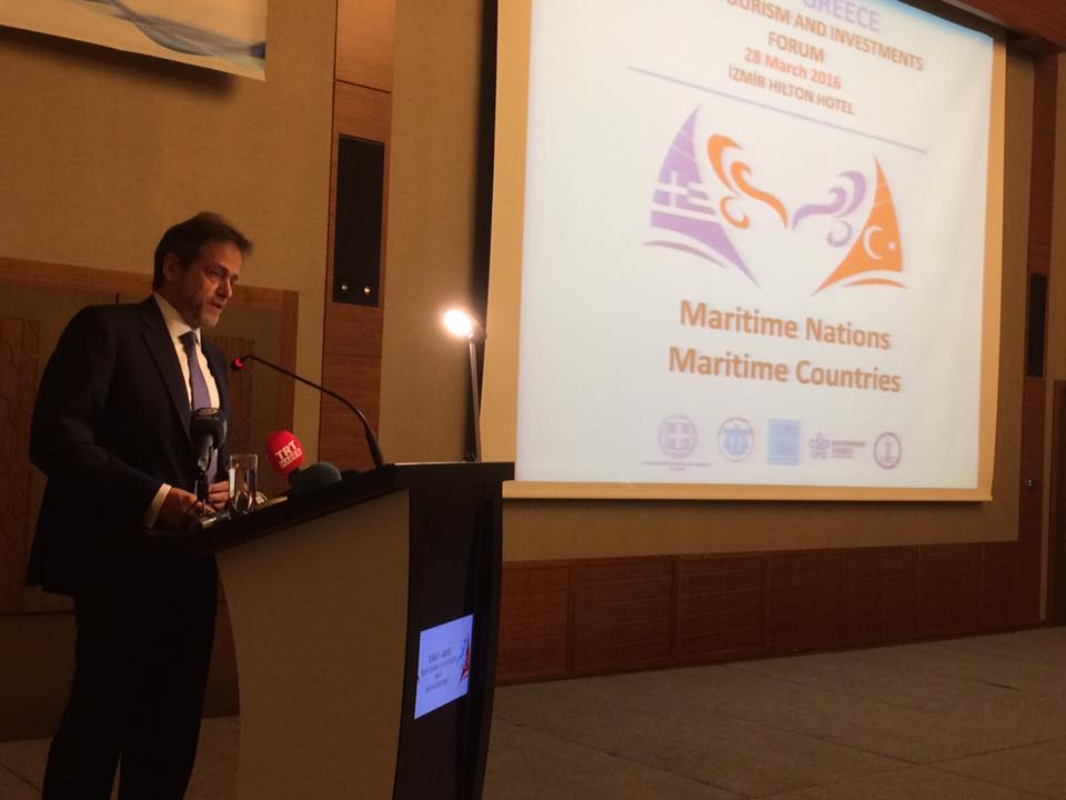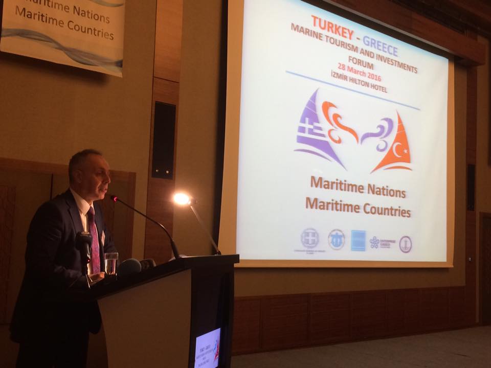 Yunanistan Cumhuriyeti İzmir Başkonsolosluğu ve İMEAK Deniz Ticaret Odası İzmir Şubesi koordinesinde düzenlenen "Türkiye–Yunanistan Deniz Turizmi ve Yatırımları Forumu” başladı. Forumun açılışına, İzmir Valisi Mustafa Toprak, Yunanistan’ın Ankara Büyükelçisi Kiriakos Loukakis, İzmir Büyükşehir Belediye Başkanı Aziz Kocaoğlu, Ulaştırma, Denizcilik ve Haberleşme Bakanlığı Deniz Ticareti Genel Müdürü Cemalettin Şevli, İzmir protokolü, deniz turizmi sektöründe faaliyet gösteren Türk ve Yunan firmaları katılıyor.