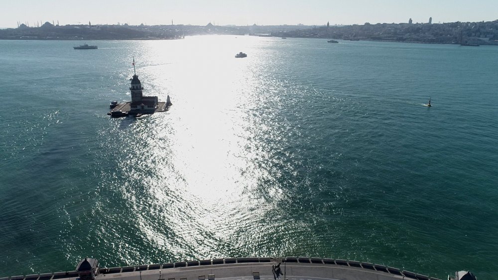 Turkuaz rengine bürünen İstanbul Boğazı havadan görüntülendi