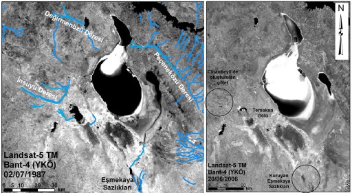 AKSARAY - Aksaray Üniversitesi Mühendislik Fakültesi Jeodezi ve Fotogrametri Mühendisliği Bölümü Öğretim Üyesi Yrd. Doç. Dr. Semih Ekercin, Tuz Gölü'nde kuraklık üzerine yaptığı bir araştırmada, son yüzyıl içindeki kıyı çizgisi değişimini incelediğini söyledi.