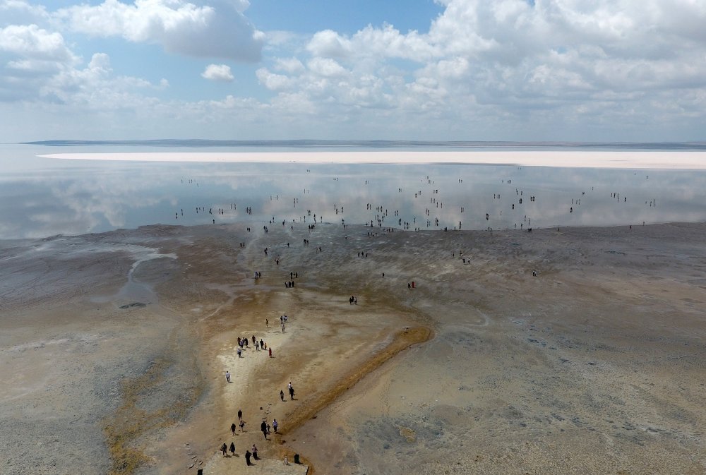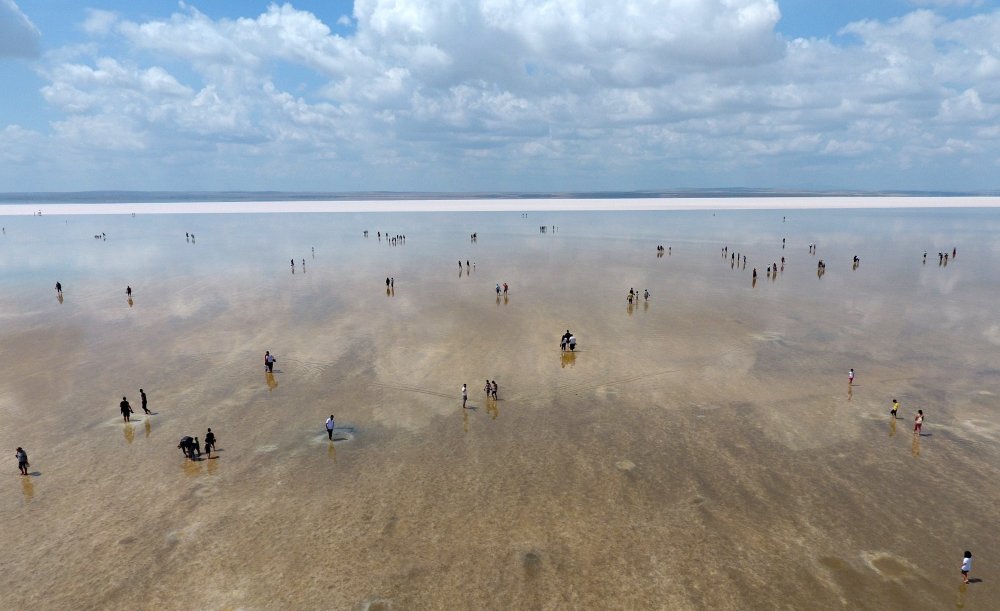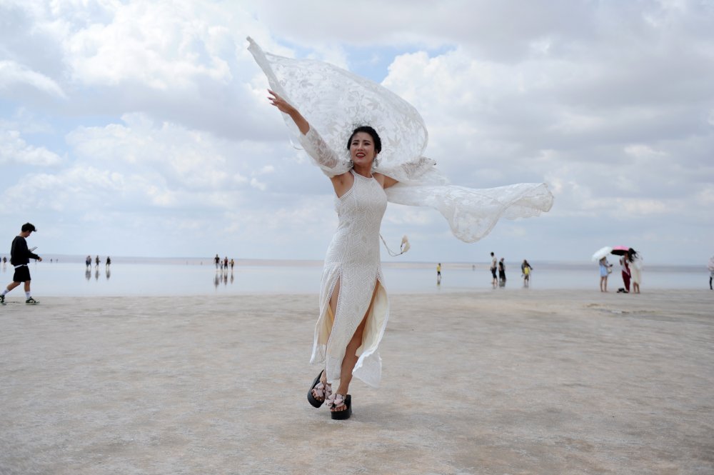 Ankara, Aksaray ve Konya illerinin ortasında yer alan, Lut Gölü'nden sonra dünyanın ikinci tuzluluk oranına sahip olan Tuz Gölü, hafta sonunun gelmesiyle birlikte yerli ve yabancı turistlerin ilgi odağı haline geldi. Çeşitli hastalıklara şifa olduğu için çıplak ayakları ile tuzlu suya giren vatandaşlar, bu sırada beyaz bir doğa harikası üzerinde vakit geçirirken evliliğe ilk adımı atan nişanlılar ile gelin ve damatlar, gün batımı eşliğinde hayatlarının en güzel anını ölümsüzleştiriyor.