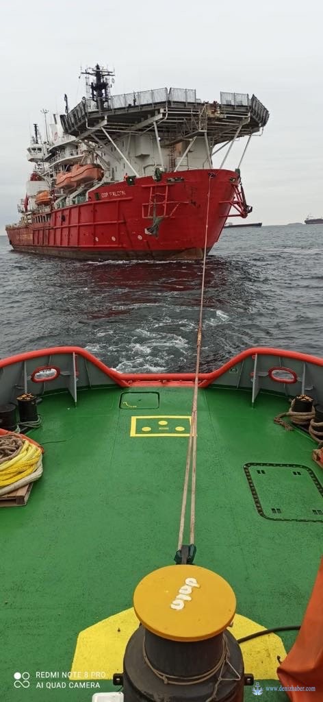 Tuzla Demir Sahası’nda demir taraması nedeniyle yardım talebinde bulunan GSP FALCON isimli 111 m boyundaki açık deniz destek gemisi, İzmit Gemi Trafik Hizmetleri Merkezi koordinasyonunda, ŞARK Römorkörü tarafından yedeklenerek Tuzla Demir Sahası’na demirletildi.