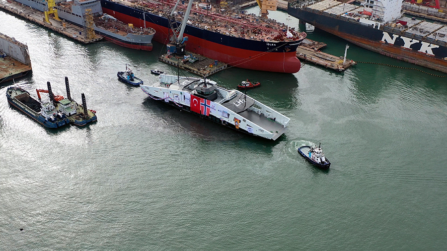 Westcon Tersanesi ve Norse Grup arasındaki anlaşma kapsamında inşa edilen dünyanın ilk hidrojen yakıtlı feribotu törenle suya indirildi.