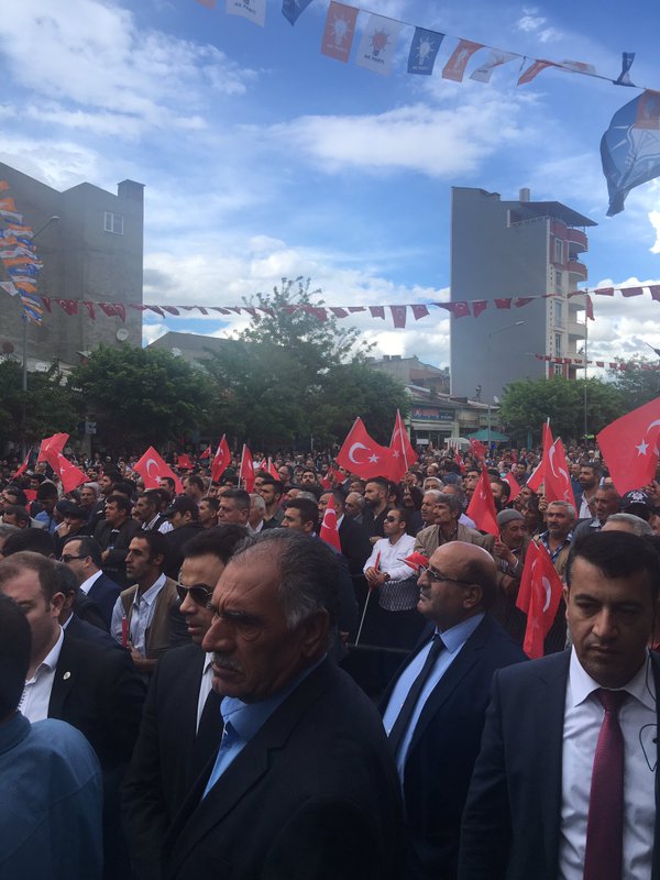 . "Bizleri yalnız bırakmayarak zor günlerimizde yanımızda olan herkesin bugün AK Parti olarak bizler de yanında olacağız" diyen Arslan, Kağızman Kars yolunun ihale edildiğinin müjdesini de verdi. Kağızmanlıların yatırımları hak ettiğine dikkat çeken Bakan Arslan, "Tarım ile geçinen ilçemizin en büyük sorunu olan sulama suyu barajı Temmuz ayında ihale edilecek. Kars ve bütün ilçeler hak ettiği yatırımlardan alacaktır" diye konuştu. Ellerinde Türk bayraklarıyla yaklaşık 5 bin kişinin İstiklal Meydanı'nda buluştuğu Kağızman'da birlik, beraberlik mesajları verildi. Bu arada, Bakan Ahmet Arslan'a, bedensel engelli ressam Şahmettin Çolak, Başbakan Binali Yıldırım için harflerle yaptığı portreyi verdi. Ressam Çolak, Bakan Arslan'dan portreyi Başbakan Yıldırım'a ulaştırmasını istedi. Arslan da Çolak'a Başbakan Binali Yıldırım'a portreyi bizzat kendisinin vereceğini söyledi. Ulaştırma, Denizcilik ve Haberleşme Bakanı Ahmet Arslan, yapımı tamamlanan Kesikköprü Yolu'nda yaptığı incelemenin ardından Kars'a hareket etti.