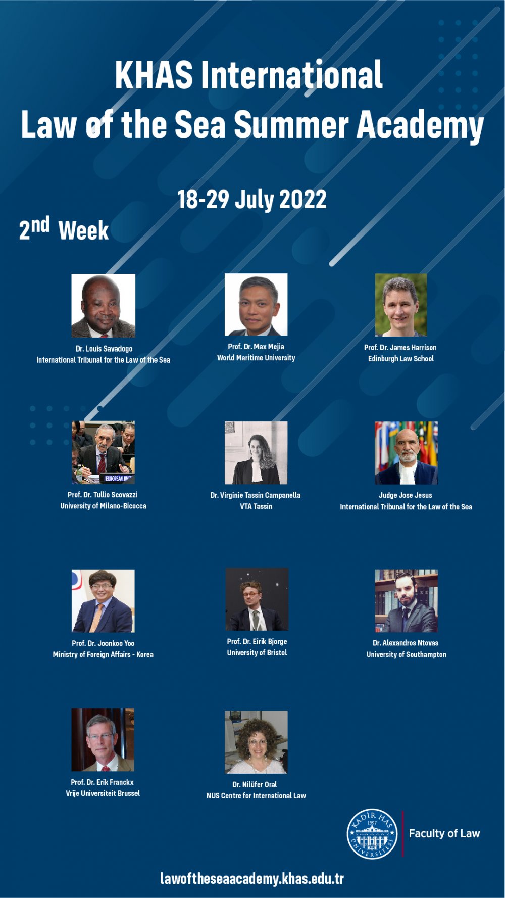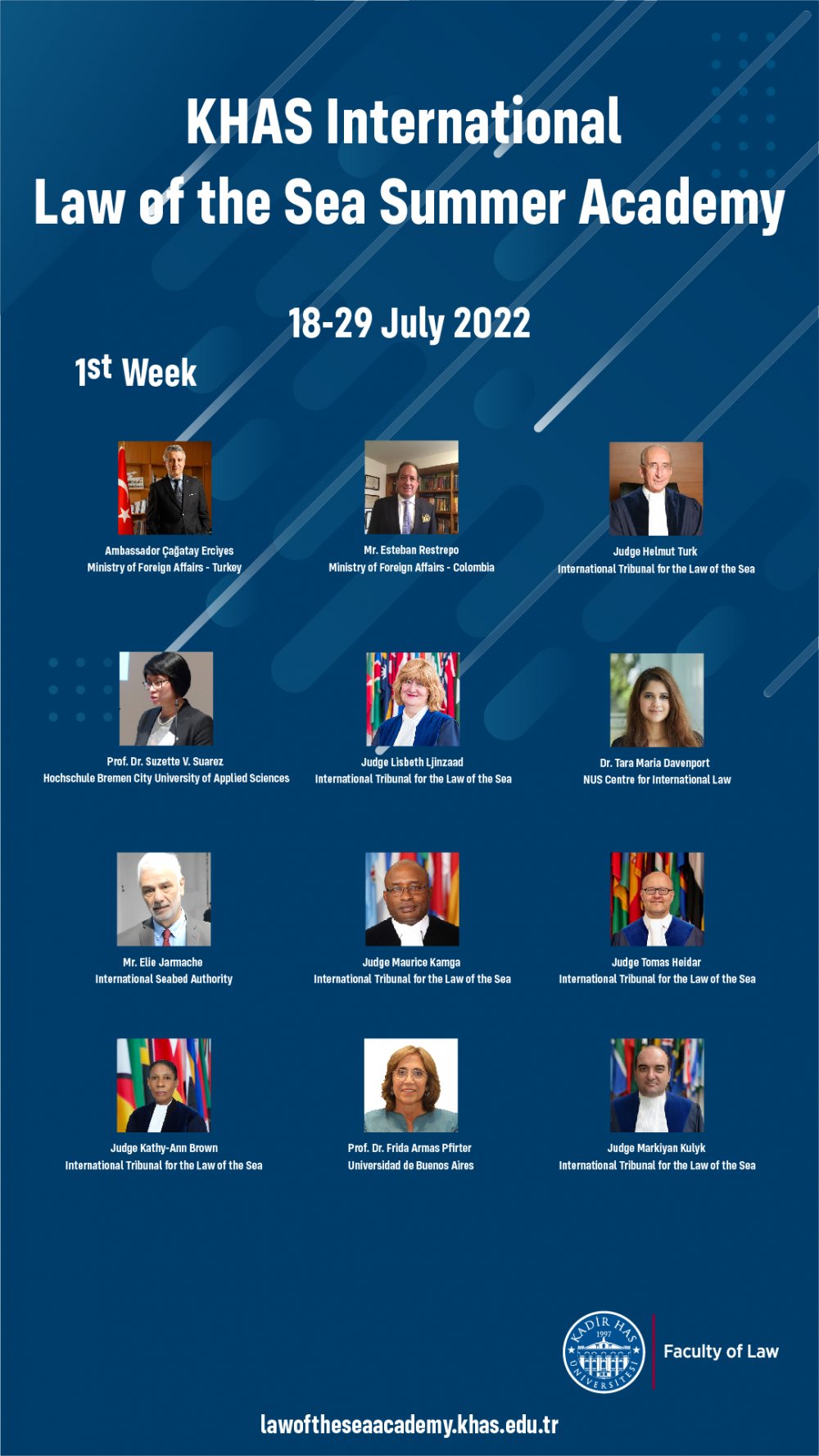 Bu çerçevede farklı deniz alanları ve kıyı devletlerinin deniz alanlarındaki egemenlik yetkileri, deniz alanlarının sınırlandırılması, denizlerin özgürlüğü ilkesinin yansımaları, bu kapsamda karasularından zararsız geçiş hakkı, deniz altı kablo ve boru hattı döşeme hakkı, denizde bilimsel araştırma yapma hakkı gibi haklar; deniz hukukunun gelişiminde uluslararası kurumların rolü, Uluslararası Adalet Divanı ve Birleşmiş Milletler Deniz Hukuku Mahkemesi’nin içtihatları, Kıta Sahanlığını Sınırlandırma Komisyonu’nun uygulamaları; Uluslararası Hukuk Komisyonu’nun deniz hukuku alanındaki çalışmaları; deniz çevresinin korunması, balıkçılık, denizaltı kültürel varlıkların korunması, polar denizler ve uyuşmazlıkların çözüm yolları Akademi’nin bu seneki konuları arasında yer almaktadır.