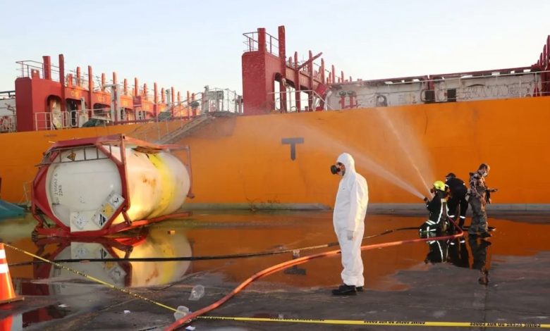Akabe Bölgesi Limanlar İdaresi Başkan Yardımcısı Hac Hassan yerel basına yaptığı açıklamada, zehirli madde içeren bir tankı taşıyan halatın koparak zehirli maddenin sızmasına neden olduğunu belirtti.