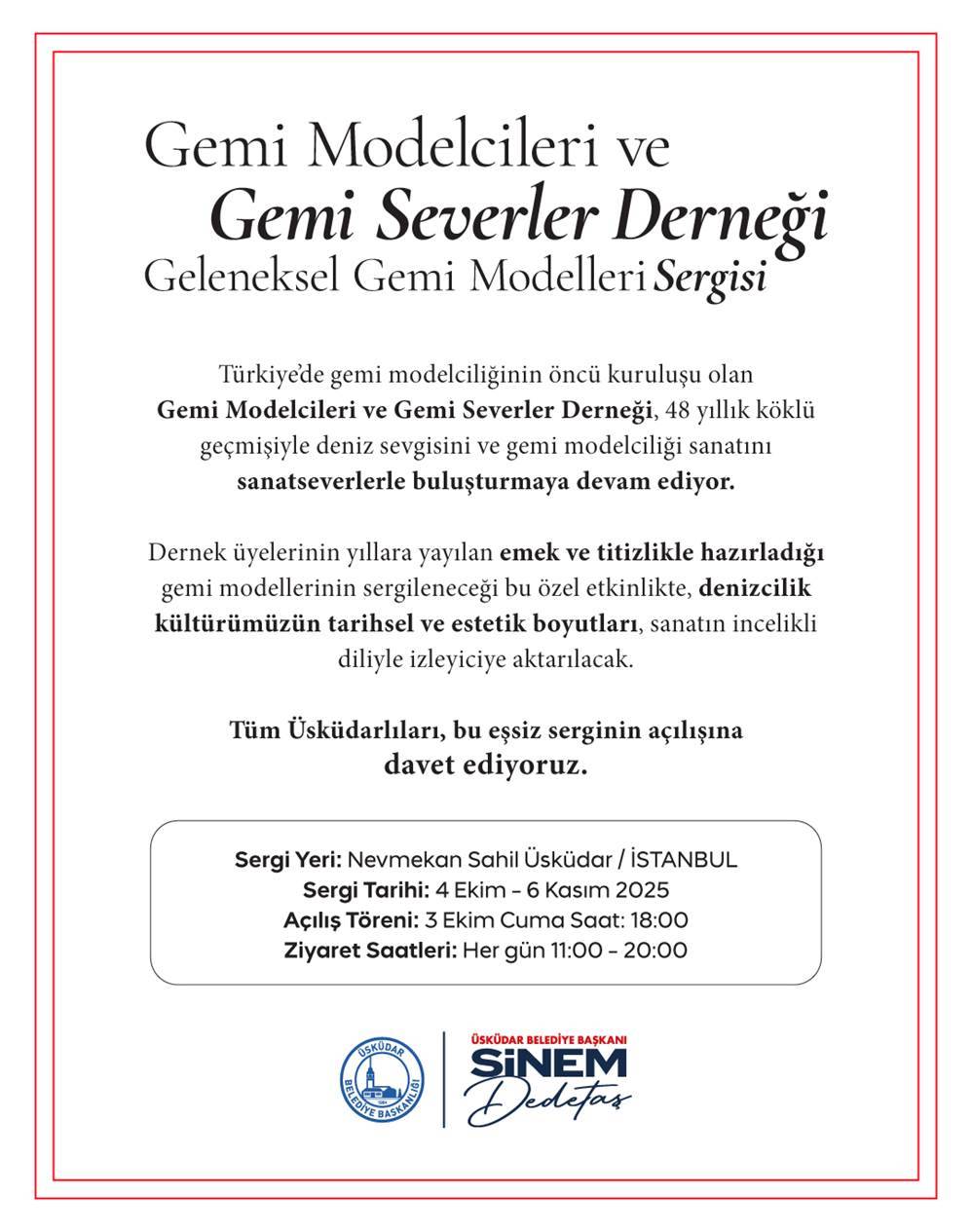Türkiye’de gemi modelciliğinin öncü kuruluşlarından Gemi Modelcileri ve Gemi Severler Derneği, 48 yıllık geçmişiyle deniz sevgisini ve gemi modelciliği sanatını Üsküdar Belediyesi’nin destekleriyle sanatseverlerle buluşturmaya devam ediyor.