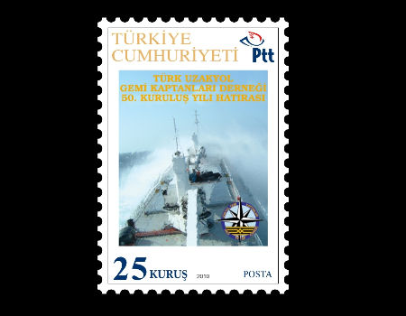 Türk Uzakyol Gemi Kaptanları Derneği, "50. Kuruluş Yılı Hatırası" olarak pul bastırdı.
