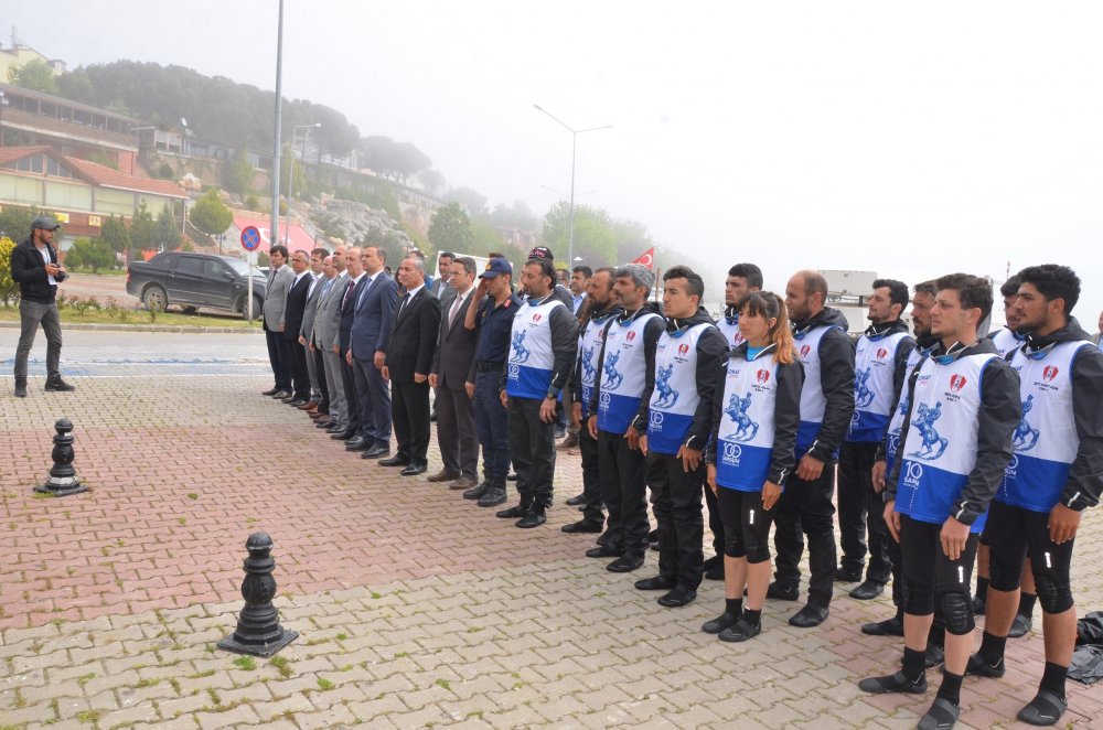 İlçe Kaymakamı Murat Güven ve Belediye Başkanı Cevat Şensoy ile kalabalık bir heyet tarafından karşılanan kürekçiler, karşılama seremonisi kapsamında şehitlerimiz anısına saygı duruşunda bulundular. Ardından İstiklal Marşı'nın okunması sonrasında bir süre Kaymakam Güven ile sohbet gerçekleştirdiler.