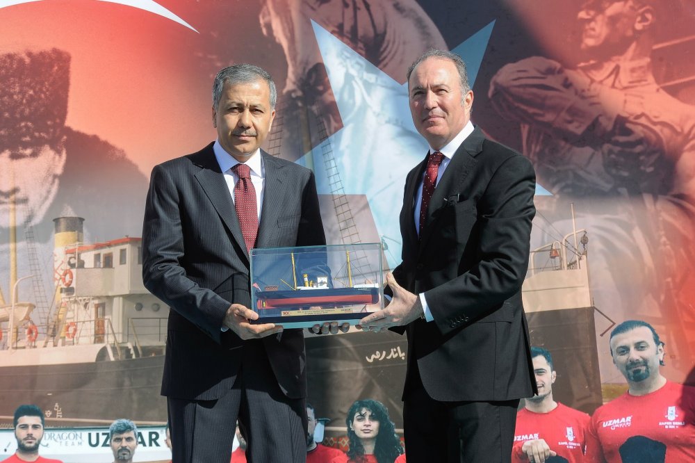 Konuşmanın ardından sponsor firma UZMAR'ın Ceo'su Noyan Altuğ, İstanbul Valisi Yerlikaya’ya Bandırma Vapuru’nun maketini hediye etti.
