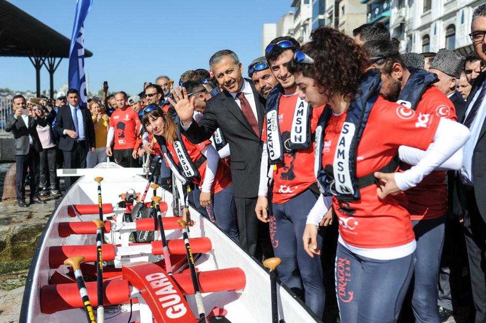 Vali Yerlikaya’nın öperek teslim ettiği bayrağı alan 26 kişilik ekip Kocaeli, Sakarya, Düzce, Zonguldak, Bartın, Kastamonu, Sinop sahillerinden 19 gün boyunca kürek çekerek geçecek ve 19 Mayıs 2019 tarihinde Samsun’a varıp Türk bayrağını Samsun Valisine teslim edecek.