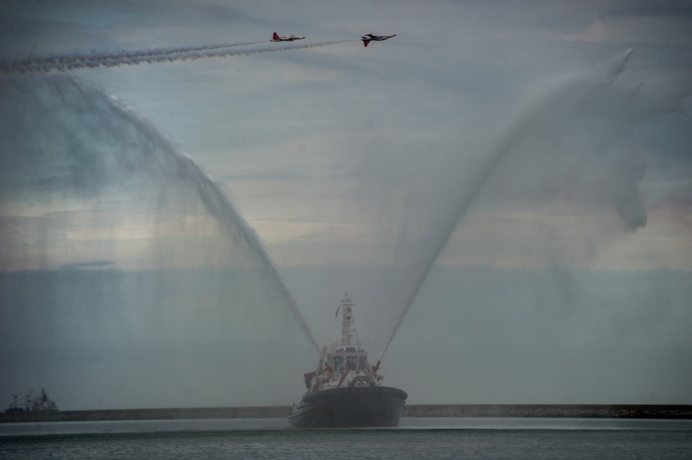 Bayrak teslim töreni öncesinde UZMAR'a ait Anka 2 ve Yeni Yunus römorkörleri de törende yerini aldı.