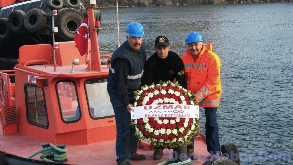 UZMAR Nemrut Kılavuzluk ve Akçansa Çanakkale Çimento Kılavuzluk vardiyalarında bulunan kılavuz kaptanları ve kılavuzluk personeli, denize çelenk bıraktılar.