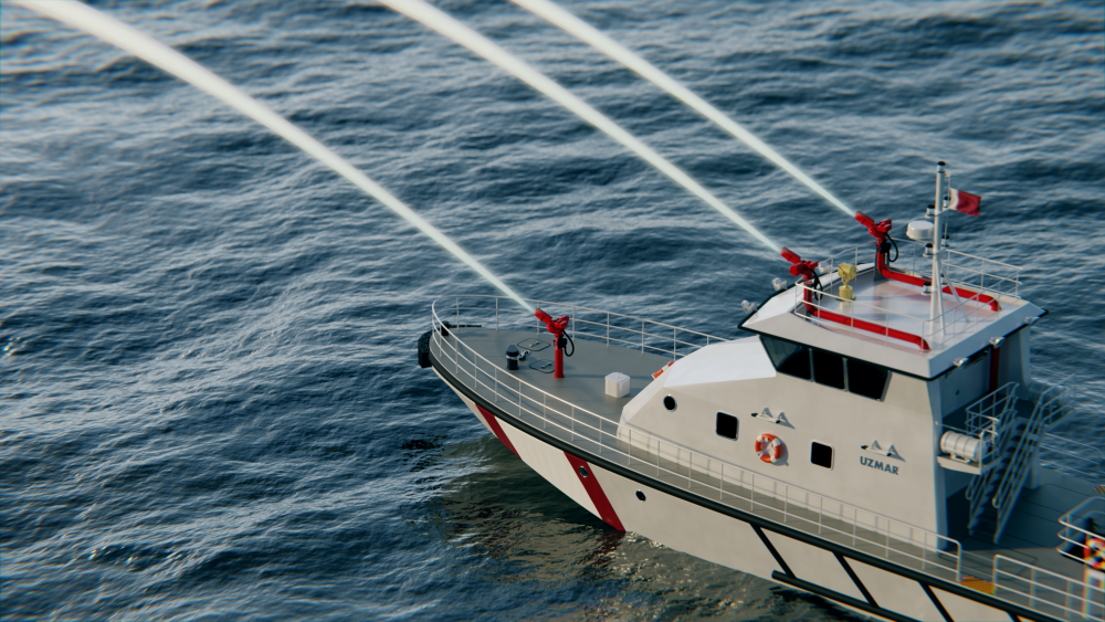 Avrupa’nın lider tersanelerinden UZMAR Tersanesi, Katar Sahil Güvenlik'in yangınla mücadele kabiliyetlerini artırmaya yönelik son gereksinimlere yanıt olarak 24 metre boya sahip yeni Alüminyum Yüksek Hızlı İtfaiye Botu tasarımını geliştirdi.