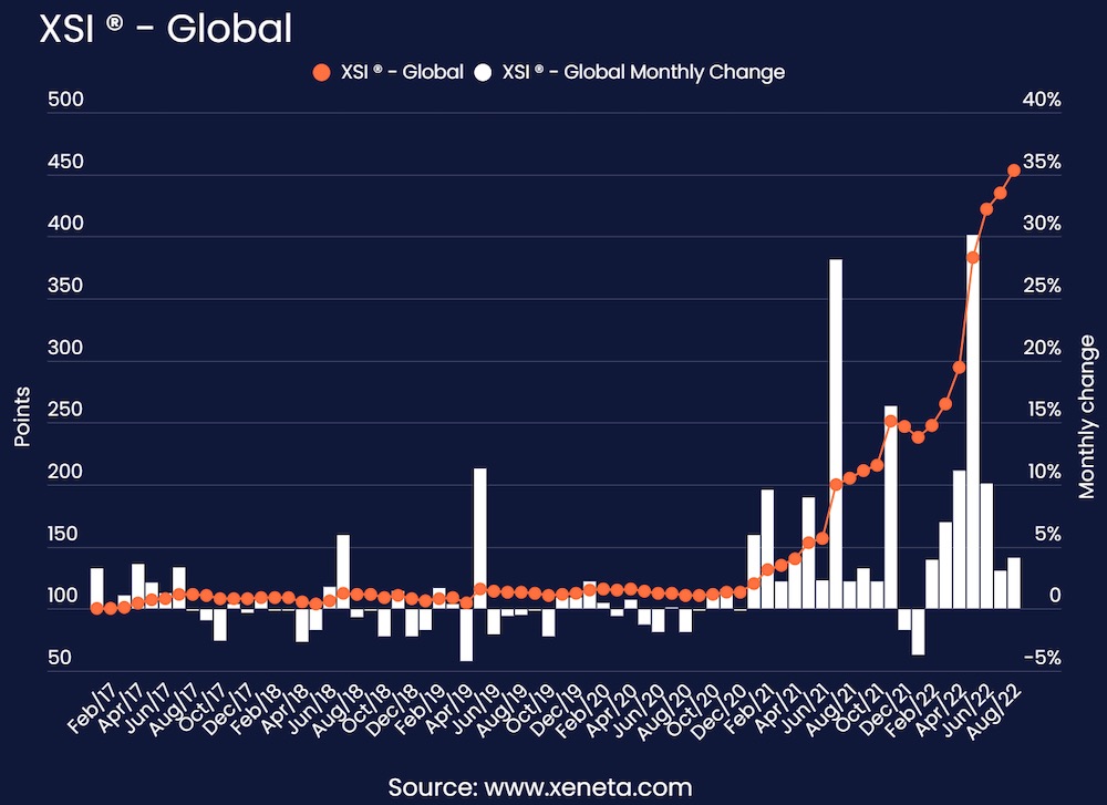 Çevrimiçi platform Xeneta'dan alınan veriler, uzun vadeli oranların Ağustos ayında %4,1 arttığını ve geçen yılın bu zamanına göre %121.2 daha yüksek olduğunu gösteriyor.