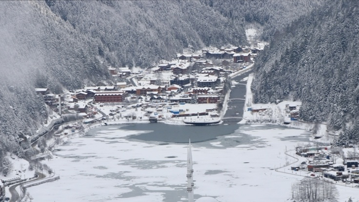 Doğu Karadeniz'de turistlerin ziyaret ettiği mekanların başında gelen Trabzon'un Çaykara ilçesindeki Uzungöl'ün yüzeyinin büyük kısmı soğuk hava nedeniyle buz tuttu.