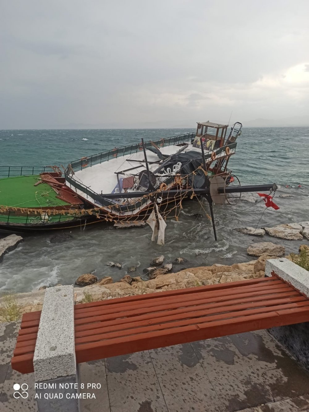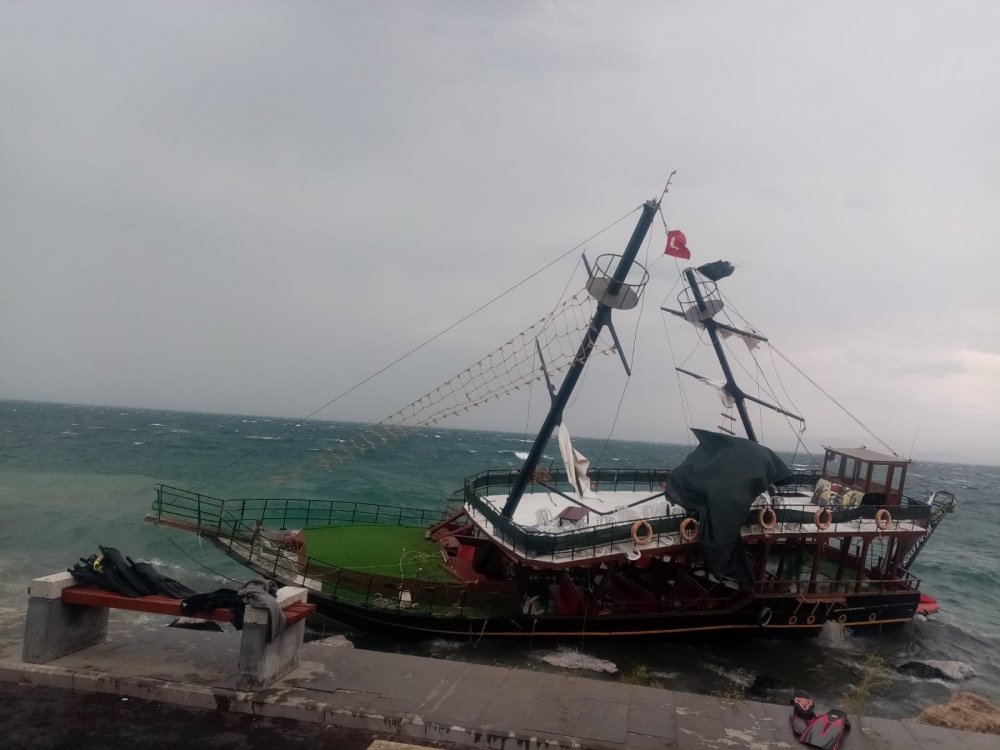 Van'da etkili olan fırtına, Van Gölü'nde de korku dolu anlara neden oldu. Edremit ilçesindeki marinadan yolcu aldıktan sonra Van Gölü'ne açılan bir gezi teknesi, fırtına nedeniyle bir süre sonra geri dönmek istedi. Limana girmek isteyen tekne, fırtınada sürüklenerek karaya oturdu.