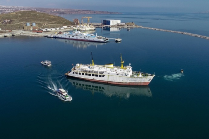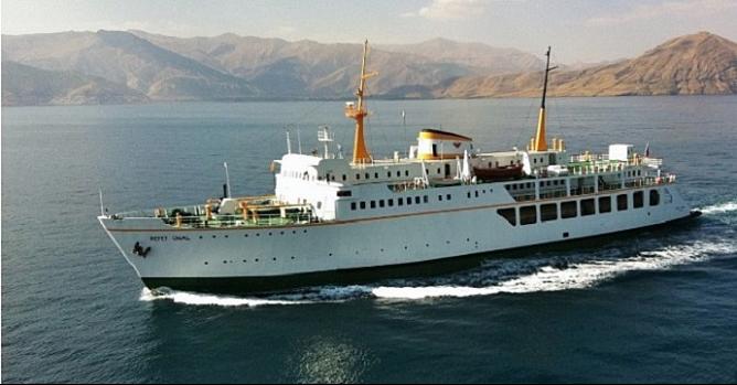 Yıllarca Van-Tatvan arasında yük taşımacılığı yapılan atıl durumundaki feribot, Edremit Belediyesinin projesiyle yüzen otel olarak hizmet vermek amacıyla Van Gölü'nde suya indirildi.