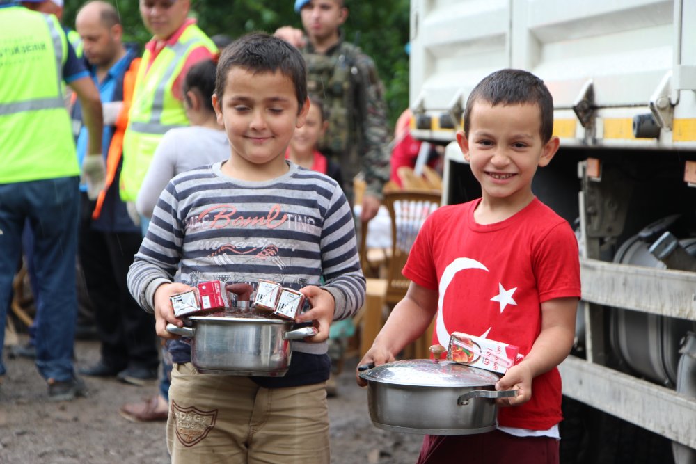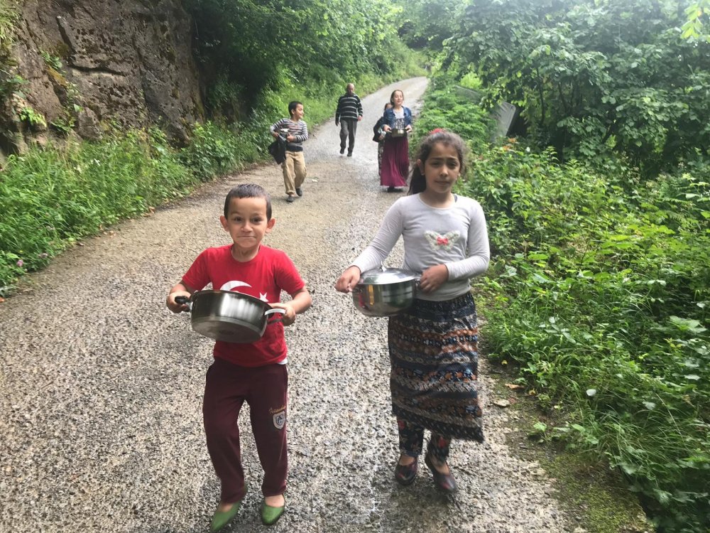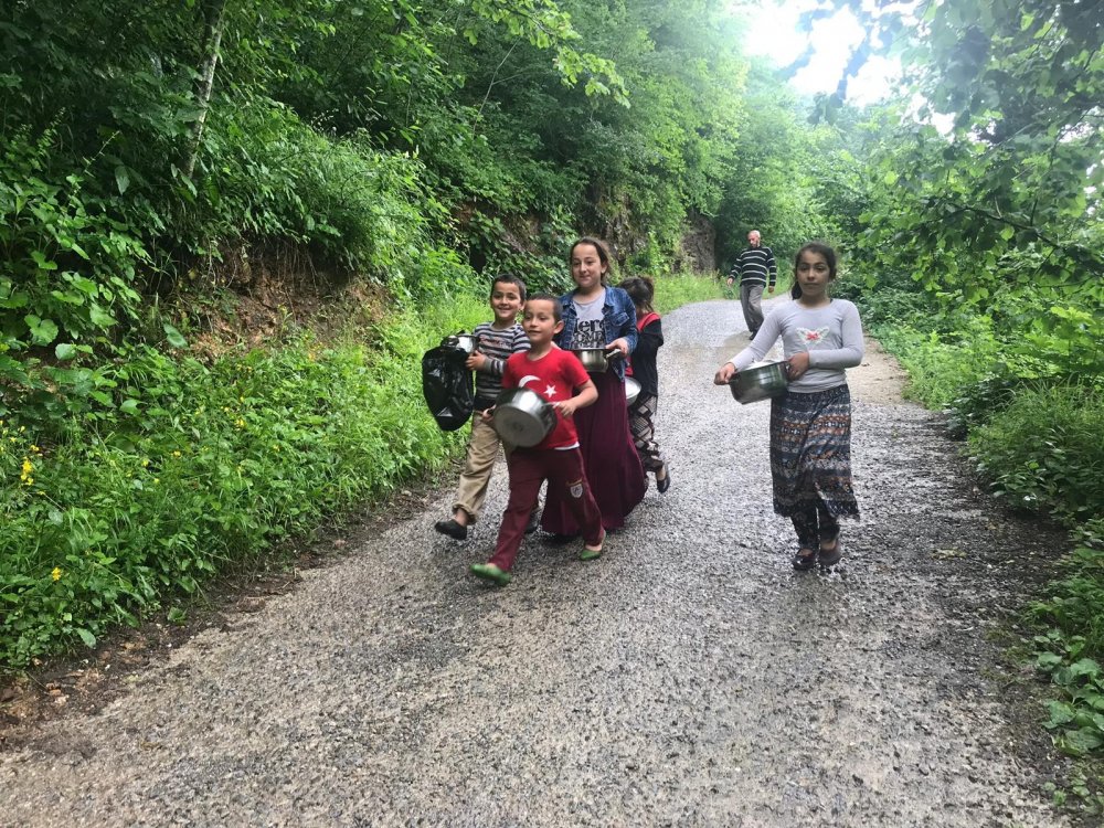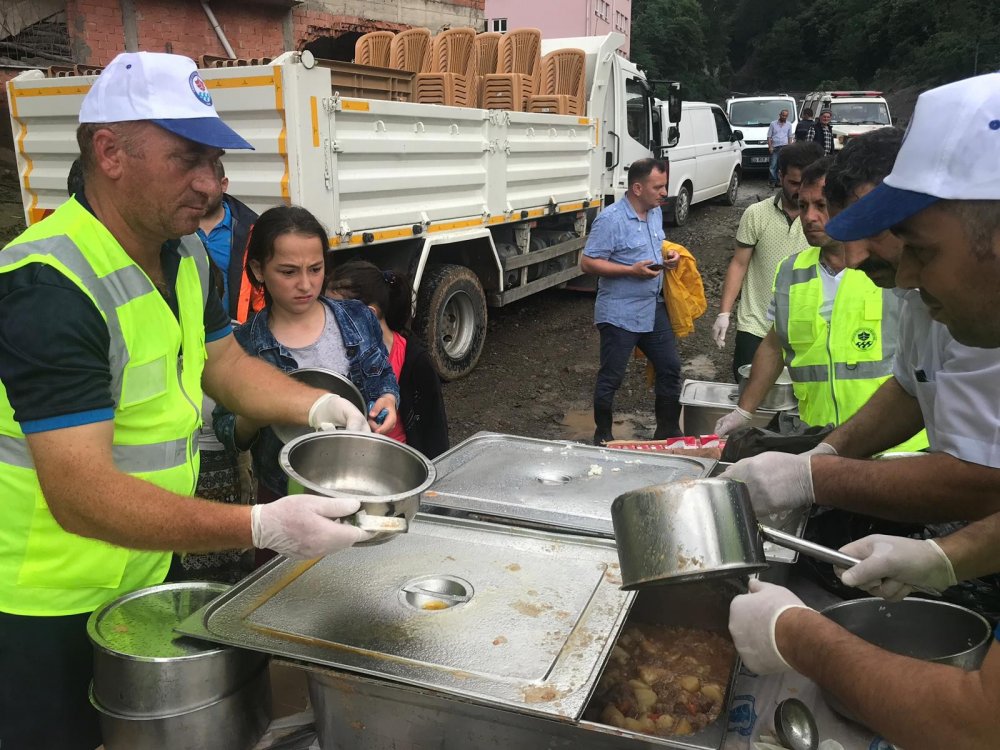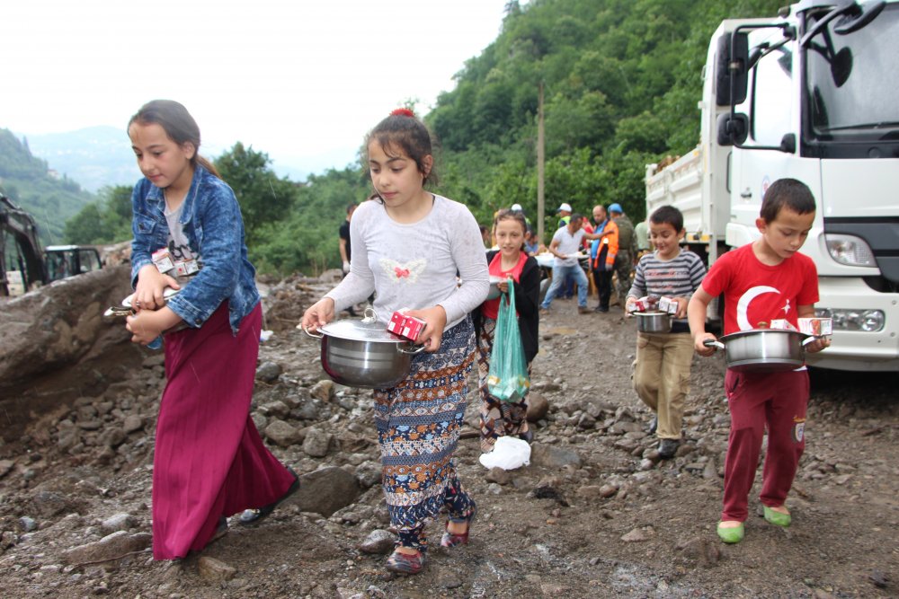 Bölgede Trabzon Büyükşehir Belediyesi tarafından kurulan yemekhane ile vatandaşlara sıcak yemek dağıtılırken, yörede yaşayan ailelerin çocuklarının sıcak yemek yiyecek olmanın sevinciyle ellerinde tencereler ile yemek dağıtımına koşmaları ilginç görüntüler oluşturdu.
