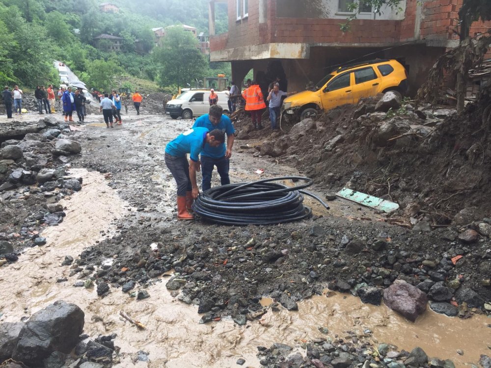 Trabzon'un Araklı ilçesi Çamlıktepe’de önceki gün etkili olan sağanak yağış, sonucu 7 kişi hayatını kaybederken, bölgede 3 kişinin de arama çalışmaları sürüyor. Yetkililer, bölgedeki vatandaşların dere yataklarından yüksek kesimlere doğru çıkmasını istiyor.