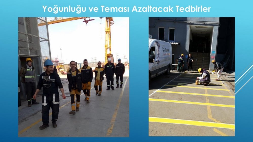 Vali Erol’un ziyaretinin bir amacı da tersane bölgesinde servis araçlarının koltuk kapasitesinin yarısı kadar yolcu almaları ve yolcuların temassız oturma düzeninin sağlanması konusunda hazırlık durumunu incelemekti. Yapılan sunumda; tersanelerin çoğunun uygulamaya hazır oldukları, bazılarının İçişleri Bakanlığı Genelgesi yayınlanmadan önce kendi inisiyatifleriyle uygulamaya başlamış oldukları, çalışan sayısı yüksek olan iki üç tersanenin de hemen kısmi uygulamaya başladıkları ve bu hafta içinde eksiklerini giderebilecekleri belirtildi.