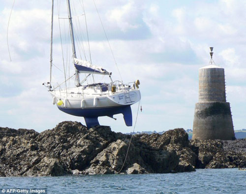 Aslında kayalara oldukça yakındı. "Knight star" (Şovalye yıldızı) adlı yat önce sürme omurgasının üzerinde karaya oturdu, daha sonra da havada sallanmaya başladı.