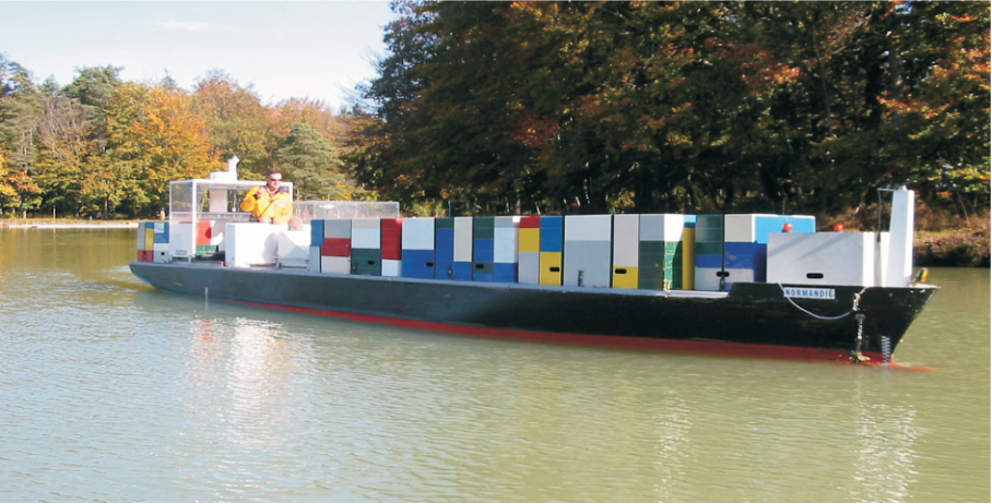 [Şekil-7: Kaptan Anıker Port Revel'de Normandy gemisinin modeli ile manevra yaparken]