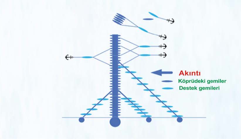 Akıntıya karşı demirletilen gemiler yardımıyla kurulan köprü