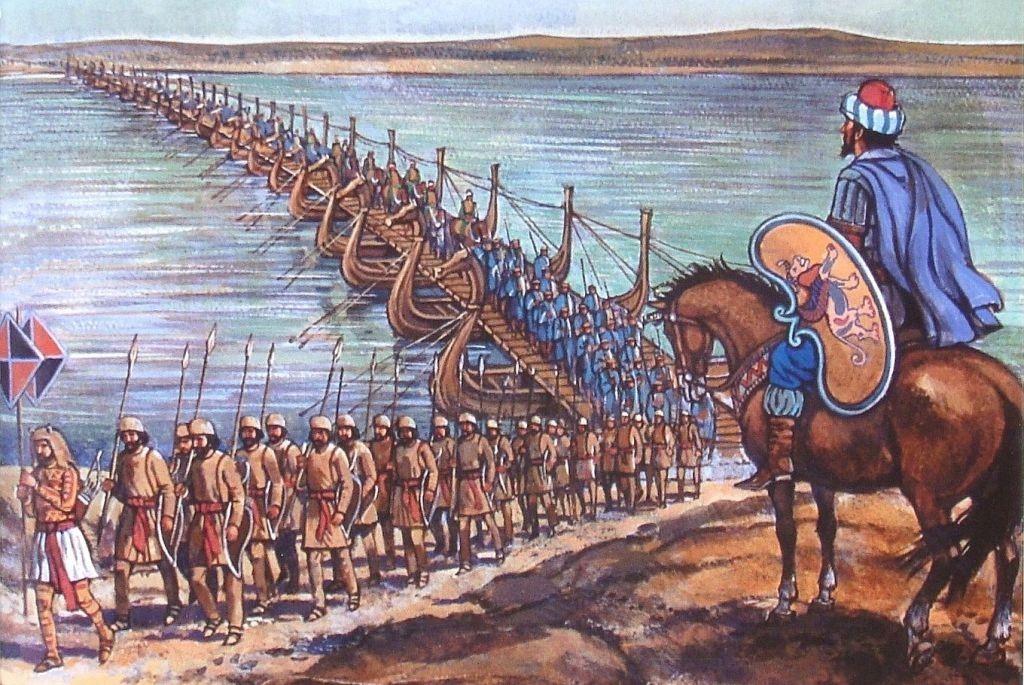 Persler tarafından Yunanistan’a karşı düzenlenen İkinci Pers Savaşı sırasında Çanakkale Boğazının iki yakası arasında birbirine bağlanan kütükler ve bunları desteklemek için akıntı yönüne demirleyen gemiler yardımıyla kurulan köprü Antik dönemin mühendislik mucizelerinden biri oİarak bilinir.