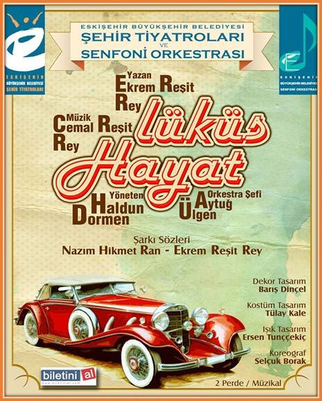 “Eskişehir Büyük Şehir Belediyesinin Lüküs Hayat opereti afişinde Şarkı sözlerini Cemal Reşit Rey ile Nazım Hikmet Ran’ın yazdığını görebiliyoruz.