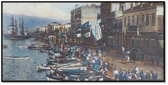 İzmir Eski liman rıhtımlarında yelkenli yük yolcu gemileri.Kaynak: İzmir’li Rubellin