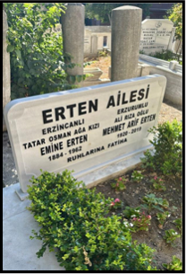 Mehmet Arif Erten’in annesi Emine Erten 1884 Erzincan doğumlu idi . 1962’de İstanbul’da vefat etmiş ve Zeytinburnu Merkez Efendi Aile Mezarlığı’nda sonsuz uğurlanmıştır. Oğlu Mehmet Arif Erten 1920 Erzincan doğumlu idi ve 2019’de MerkezEfendi Aile Mezarlığı’nda annesinin türbenin yakınındaki mezarında sonsuzluğa uğrulanmıştır. Vefatında 99 yaşında idi..