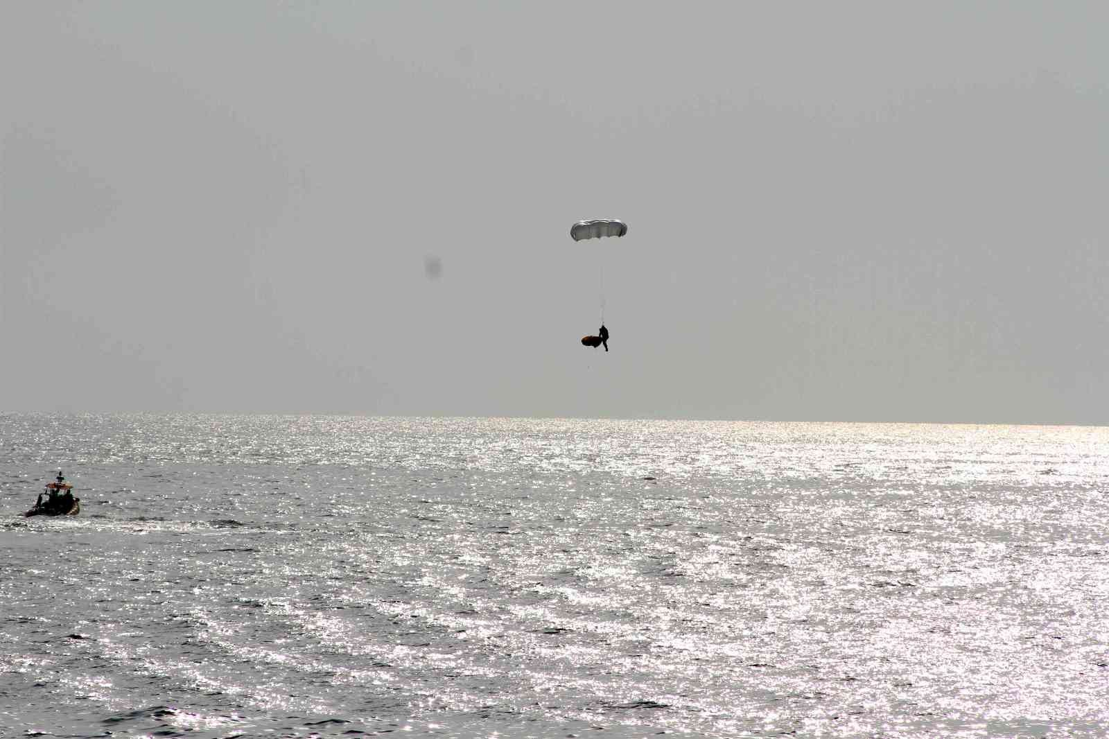 Muğla’nın Fethiye ilçesinde yamaç paraşütüyle atlayan pilot, yedek paraşütünü açarak denize indi.