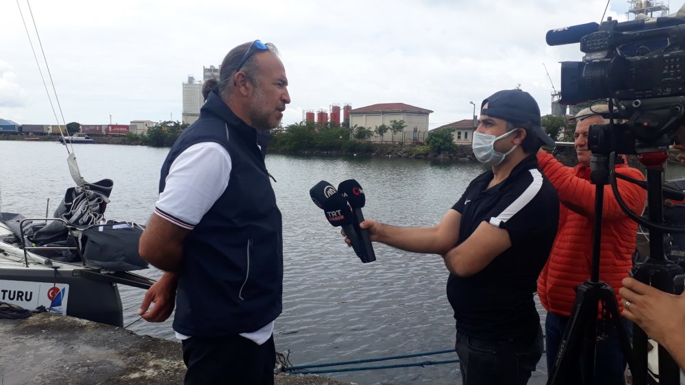 Seyahati öncesi Hopa Limanı'nda basın mensuplarına açıklamada bulunan Tolga Pamir, 7 yaşından bu tarafa yelken sporuyla uğraştığını söyledi.
