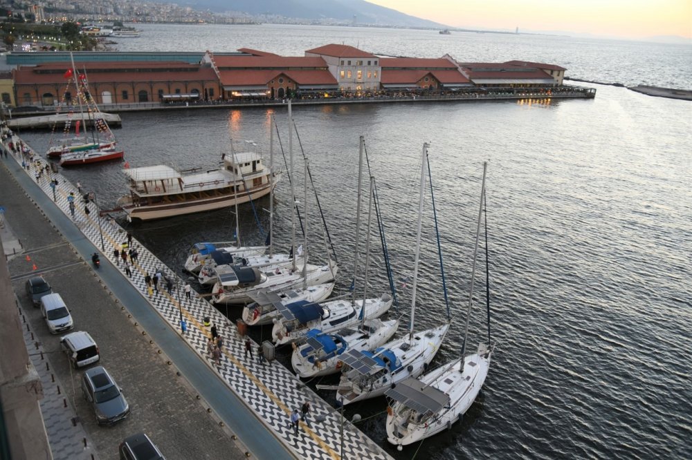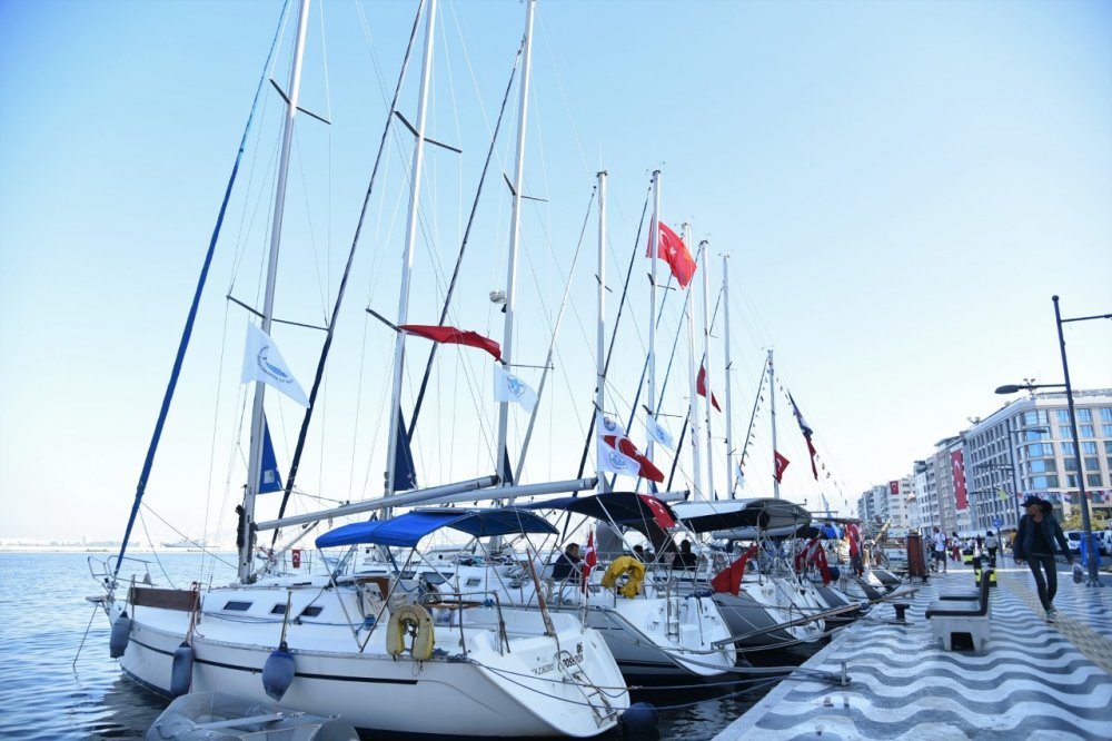 İMEAK Deniz Ticaret Odası İzmir Şubesi ile İzmir 100. Yıl Kortej Grubu işbirliği ile yapılan etkinlik öncesi Çeşme, Foça gibi ilçelerden bir gün önce yola çıkan yelkenli tekneler, Pasaport Rıhtımı’na yanaştı. Deniz Ticaret Odası’nda verilen kokteylin ardından geceyi Pasaport’ta geçiren yelkenliler, sabah saatlerinde önce Pasaport Mendireği içinde, ardından kutlamaların yapıldığı Cumhuriyet Meydanı’nda geçit töreni düzenlediler. Yelkenli tekneler, gösterilerin ardından İzmir Körfezi’ni dolaşarak yeniden Pasaport Rıhtımı’na yanaştılar.