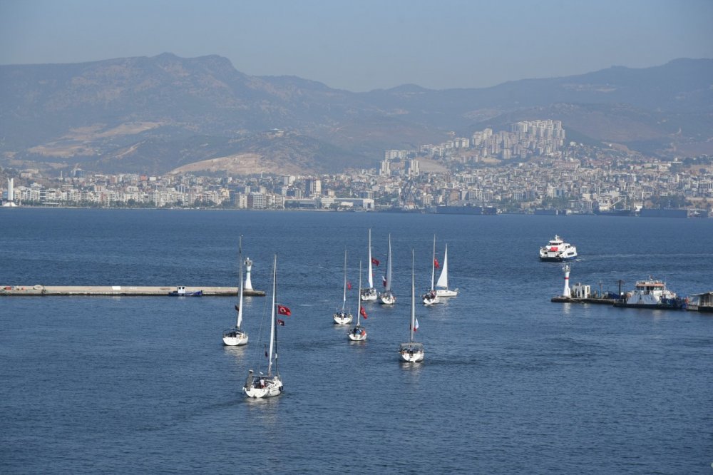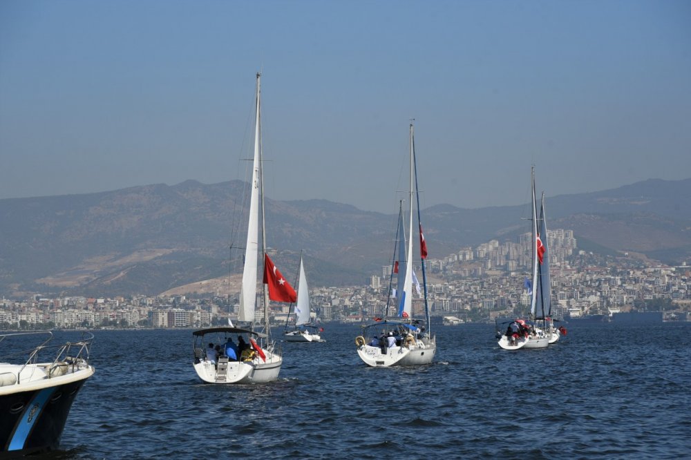 9 Eylül İzmir’in düşman işgalinden kurtuluşunun 100. yılı çeşitli etkinliklerle görkemli şekilde kutlanırken, 25 civarında yelkenli tekne de İzmir Körfezi’nde düzenledikleri kortej ile kutlamalara eşlik etti. Vatandaşlar, denizdeki geçit törenini ilgiyle izledi.
