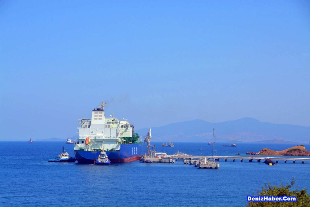 Güney Kore'den 11 Haziran'da Türkiye'ye doğru yola çıkan 170 bin metreküp depolama kapasiteli yeni yüzer sıvılaştırılmış doğal gaz depolama ve yeniden gazlaştırma terminali (FSRU), Aliağa ilçesine geldi. Dev gemi, Çakmaklı Mahallesi'nde bulunan Etki Liman İşletmelerine ait limana römorklar eşliğinde yanaştı.