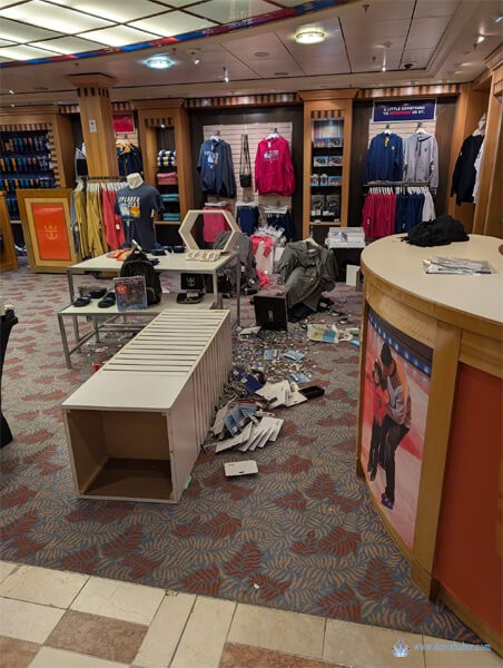 İnternette yayınlanan videolar ve resimler, yolcuların etrafta kaydığını ve sonrasında tabakların, bardakların, barda şişelerin, hediyelik eşya dükkanı ürünlerinin ve daha fazlasının etrafa dağıldığını gösteriyor.