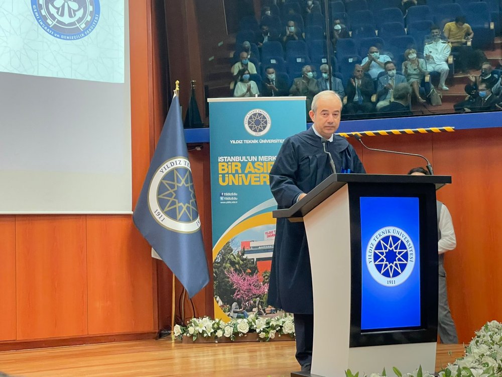 YTÜ Rektörü Prof. Dr. Tamer Yılmaz; Yıldız Teknik Üniversitesi Türkiye’nin en iyi üniversitesidir. Türkiye’nin en iyi üniversitesinin rektörü bir gemi mühendisi olarak 30 yıla varmadan sizler arasından birinin rektör olmasını canı gönülden istiyorum. Bu bir gelenek olsun. Gerçekten 150 bin mezunu olan Yıldız Teknik Üniversitesi Türkiye’nin kalkınmasının en öncü üniversitesidir. Türkiye’yi sizler taşıyacaksınız. Sizlerle gurur duyuyorum ve heyecanınızı paylaşıyorum.’’ İfadelerini kullandı.