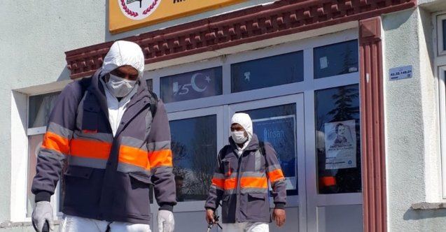 Dünyadaki yeni tip koronavirüs (Kovid-19) salgınına karşı alınan tedbirler kapsamında Konya’nın Yunak ilçesindeki okullara dezenfekte çalışması yapıldı.