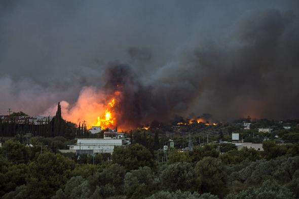 Yunanistan'ın başkenti Atina'da yerleşim yerlerinin yakınında yangın felaketi yaşanıyor.