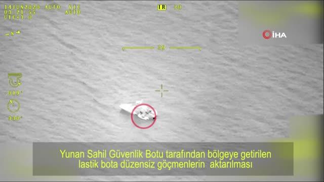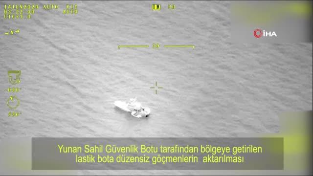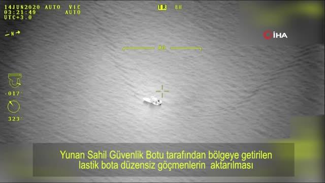 İleryoz Adası doğusunda Yunan Sahil Güvenlik botu tarafından taşınan düzensiz göçmenlerin hayatlarını tehlikeye düşürecek şekilde lastik botla açık denize bırakıldığı dakikalar insansız hava aracı tarafından dakika dakika kaydedildi.