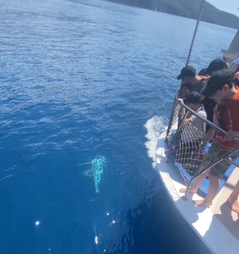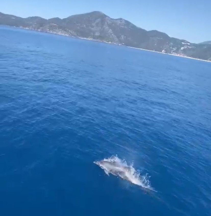 Fethiye'nin dünyaca ünlü Ölüdeniz mevkii açıklarında bir yunus, tur yapan bir tekneye eşlik etti. Teknedekilere gösteri yapan sevimli yunus renkli görüntülerin yaşanmasına neden oldu. Teknedeki turistler tarafından cep telefonu ile görüntülenen yunus, bir süre tekneye eşlik ettikten sonra gözden kayboldu.