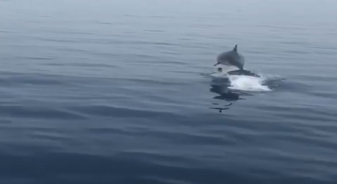 İskenderun Teknik Üniversitesi (İSTE) Araştırma Gemisi'nin çevresinde toplanan yunuslar, körfezdeki gemi ve teknelerle yarışmaya başladı. Bir süre gemi ve tekneleri geçmek için mücadele eden yunuslar, daha sonra bölgeden ayrıldı. Balıkçılar, bu anları cep telefonları kameralarıyla ka