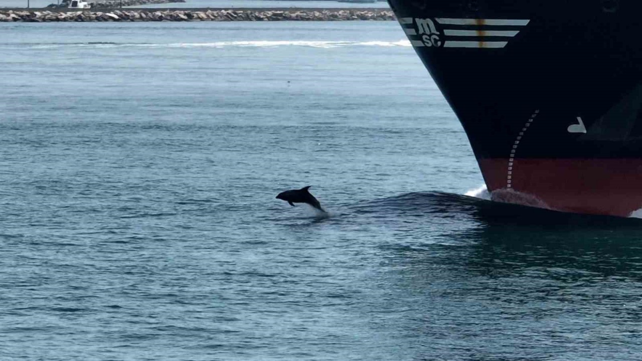 Marmara Denizi’nde popülasyonları artması ile bilinen yunus balıkları en çok İstanbul ve Çanakkale Boğazlarında gemi geçişlerine eşlik ederken kameralara takılıyor. Marmara Denizi’nden Karadeniz’e doğru yola çıkan dev konteyner gemisine eşlik eden yunus sürüsü Sarayburnu açıklarında havadan görüntülendi. Geminin burun kısmından zıplayarak onunla yarışıyormuş gibi giden yunuslar izleyenlerin içini ısıttı. Yaklaşık 15 dakika boyunca eşlik ettikleri gemi yakınından ayrılarak gözden kayboldular. Gemide bazı çalışanlar ise yunusların sevimli eşliğini fark edip geminin burun kısmından o anları izledi.