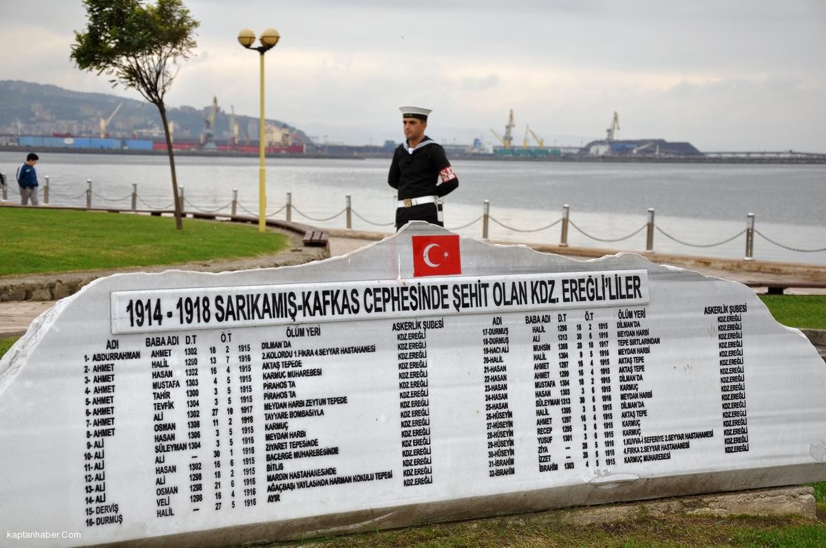 Ereğli ilçesinde, Sarıkamış Harekatı'nı destekleyecek malzemeleri taşırken Ruslarca batırılan 3 geminin şehit mürettebatı ve askerleri için anma töreni düzenlendi